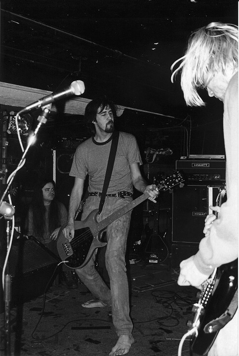 The concert was March 9th, 1991… a few months before they’d hop into the studio to record Nevermind.  The Zoner said there were about 67 people at the show in the basement of the Strathcona Hotel (where Club 9one9 is now).  The picture at the top of blog post is the only one I could find online form that show.  It features predominately Krist Novoselic… performing barefoot.  You’ll see Kurt off to the side… and some long-haired bro.  Good for that guy!